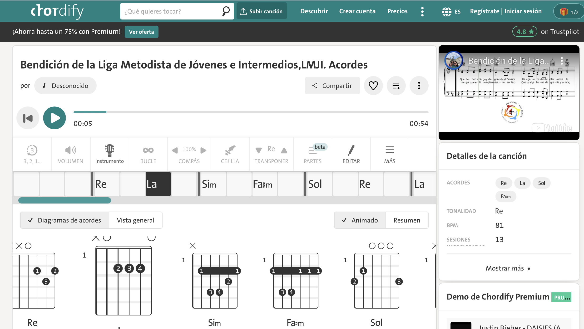 Enlace donde puede consultar los acordes para guitarra de la Bendición de la Liga Metodista de Jóvenes e Intermedios -LMJI,(México). Tono de Re Mayor.